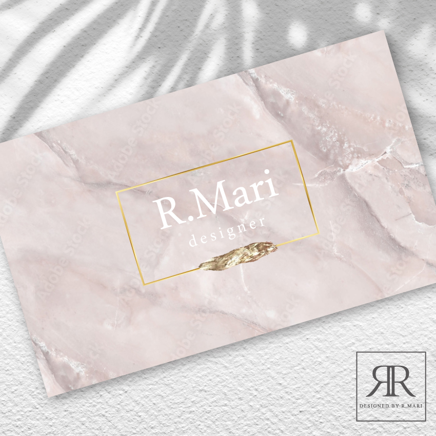 名刺やリーフレットの背景に、漆喰や石材を思わせるムラ感のある背景を採用。高級ホテルの壁面のように、サロンのインテリアを引き立てます。